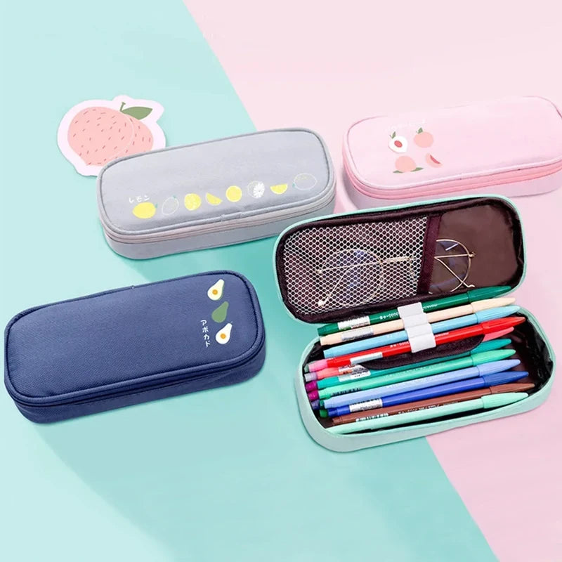 1pc Oxford Cloth Fruit Pencil Bag Creative Cartoon Pen Bag Durable Large Capacity Stationery Bag Simple Pencil Case