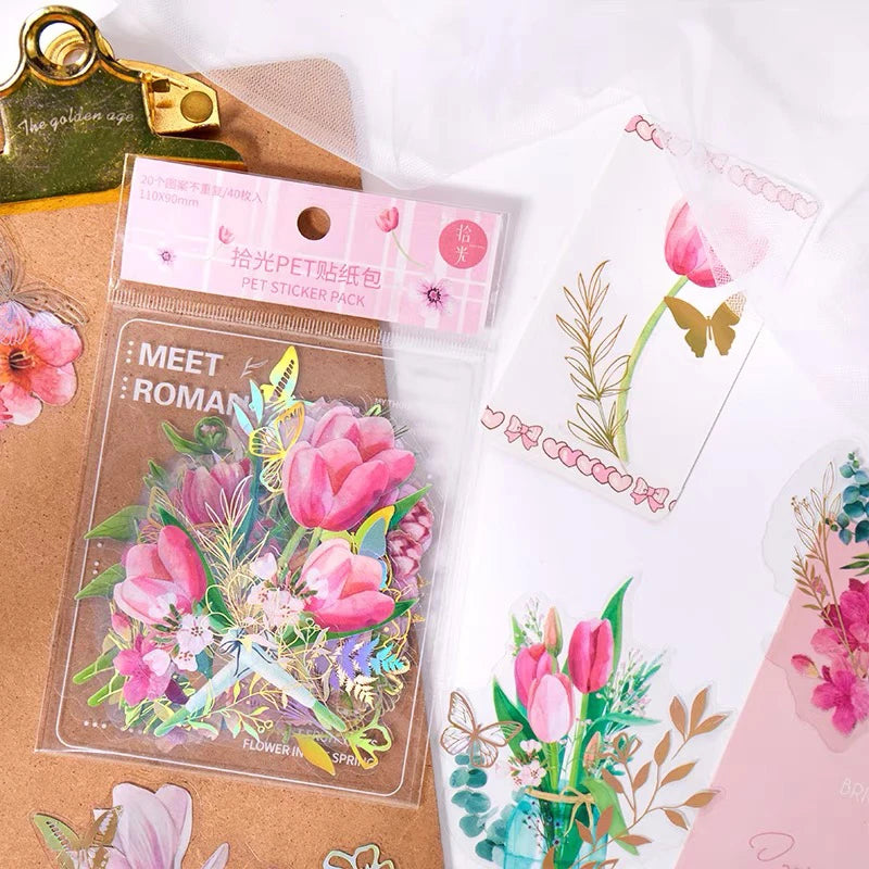 6 style 40pcs/Bag PET Stickers Hot Stamping Plant Flower Theme Mug Mobile Phone Decorative Handbook DIY Collage Stationery