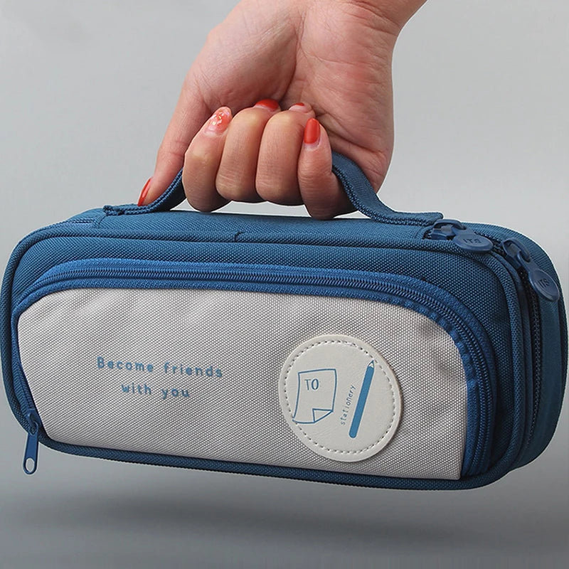 1 pc Cartoon Pencil Case Large Capacity Canvas Double-layer Pencil Bag Multi-function Handheld Kids Stationery Bag