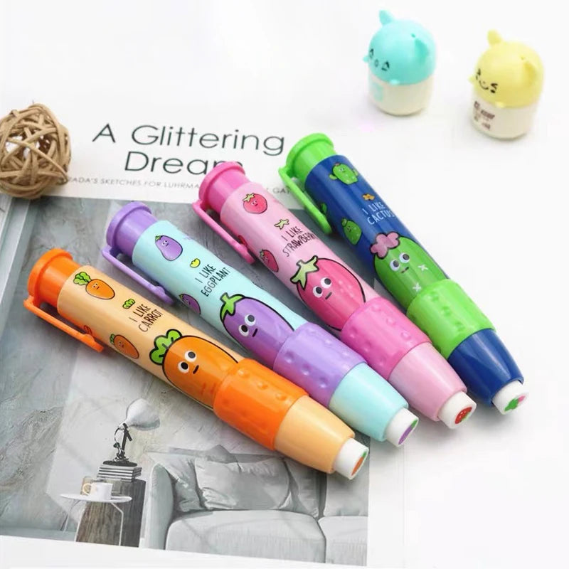 1pc Cartoon vegetables and fruits Push-pull Erasers Student Rubber Writing Drawing Eraser Creative Pencil Eraser School Supplies
