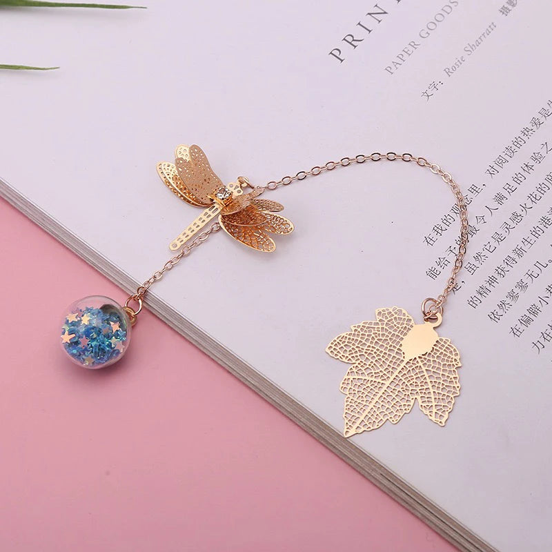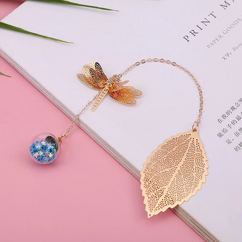 1Pc Creative Alloy Leaf Bookmarks Dragonfly Crystal Ball Student Stationery Book Page Holder Reading Book Paper Clip Readers