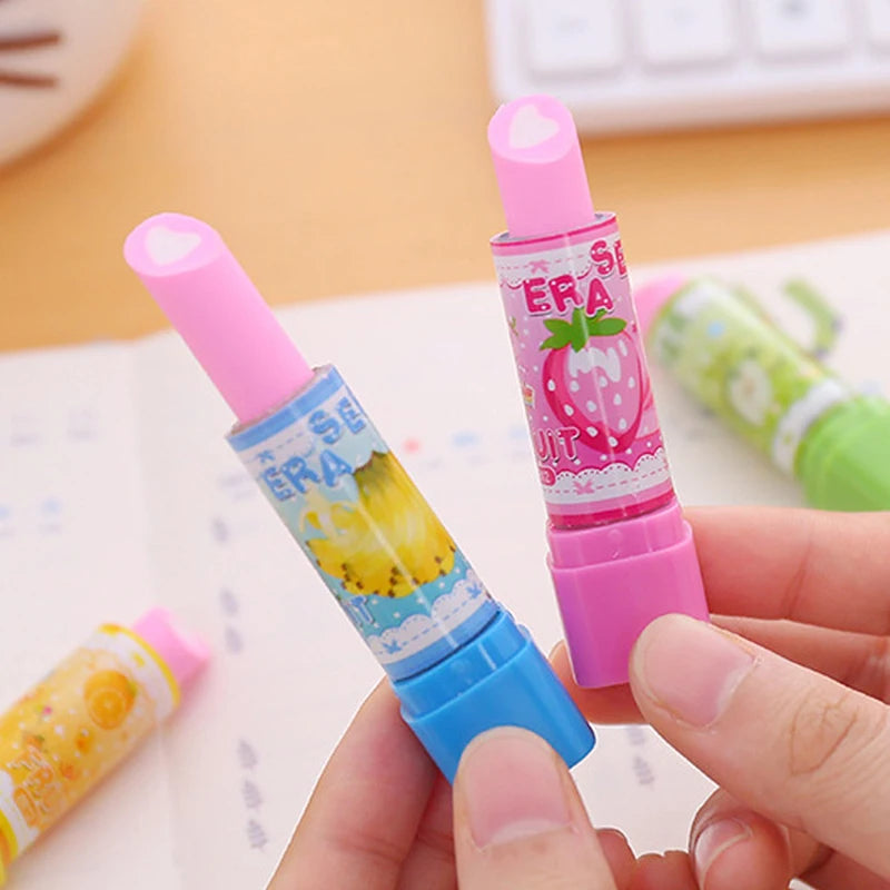 Lipstick Erasers: Lipstick design with fruit pattern is suitable for kids, girls and student.