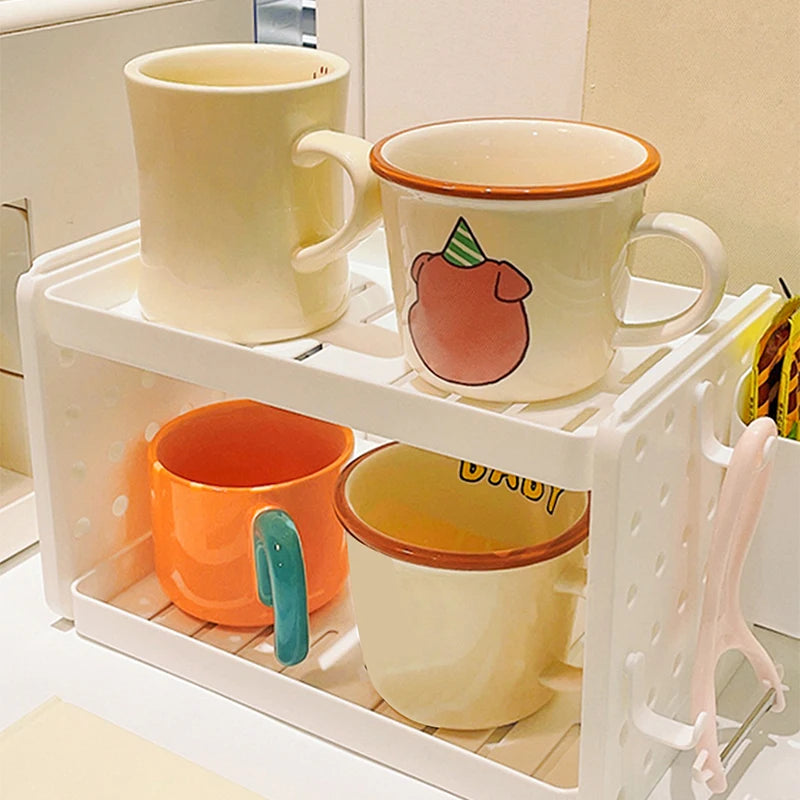 1pc Double Tier Desktop Storage Organiser Display Shelf with Cutout Design, Home Office and Dorm Room, 2-Layer