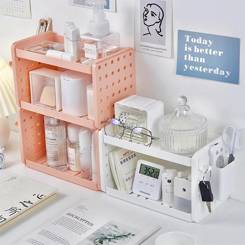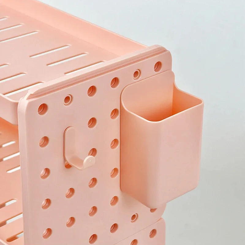 This innovative HIPS Material Desktop Organizer combines a pegboard system with modular storage solutions, perfect for decluttering desks, offices, or study areas. The DIY-friendly design allows you to freely assemble and customize compartments, hooks, and shelves to fit your needs—ideal for storing pens, tools, keys, headphones, cables, and more. Whether mounted on the wall or placed upright on your desk, it maximizes vertical space while adding a modern aesthetic to your workspace.