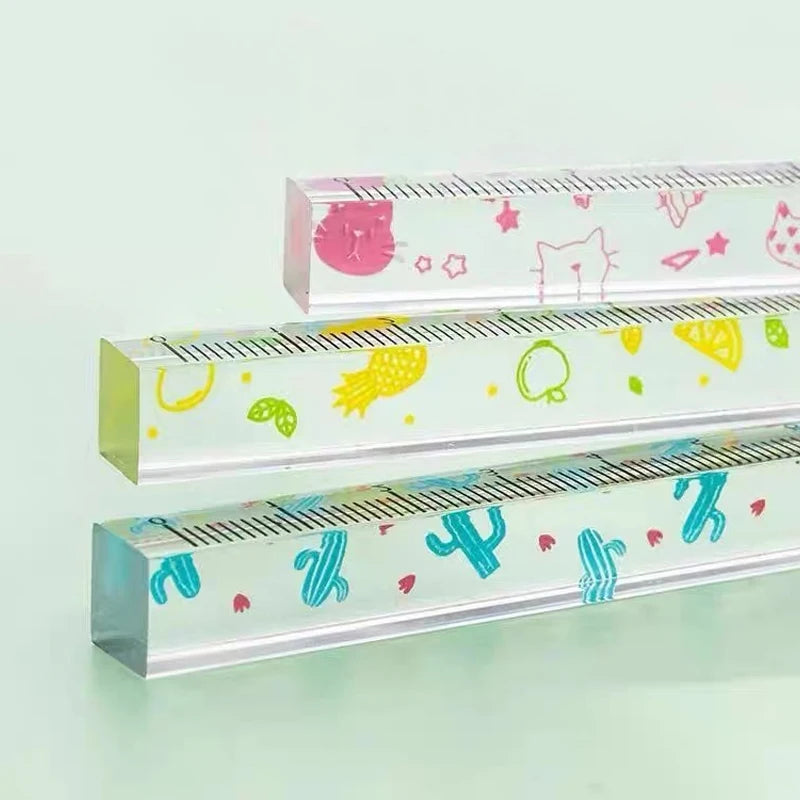 1Pc Kawaii Acrylic Four Sided Ruler Straightedge High Appearance Measuring Ruler Student Protractor