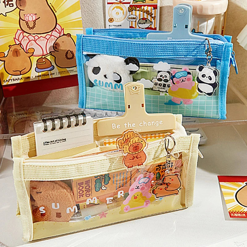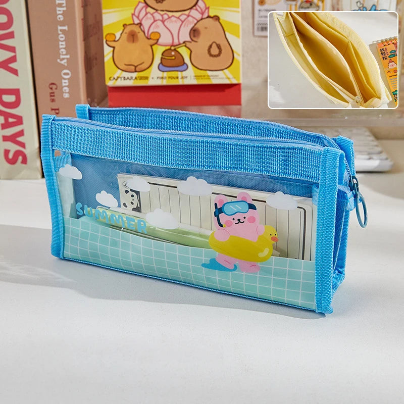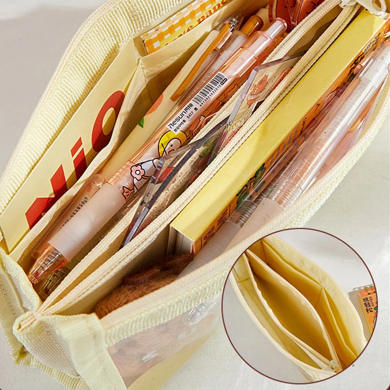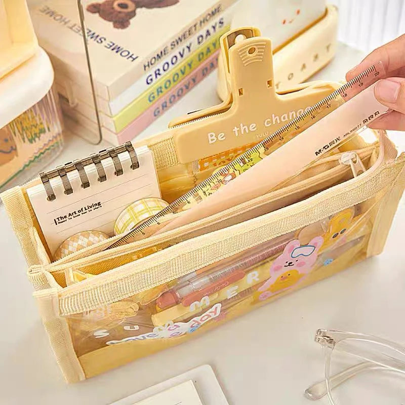 1pc Large capacity multi-function pen case - Transparent portable stationery storage case - ideal for desk storag