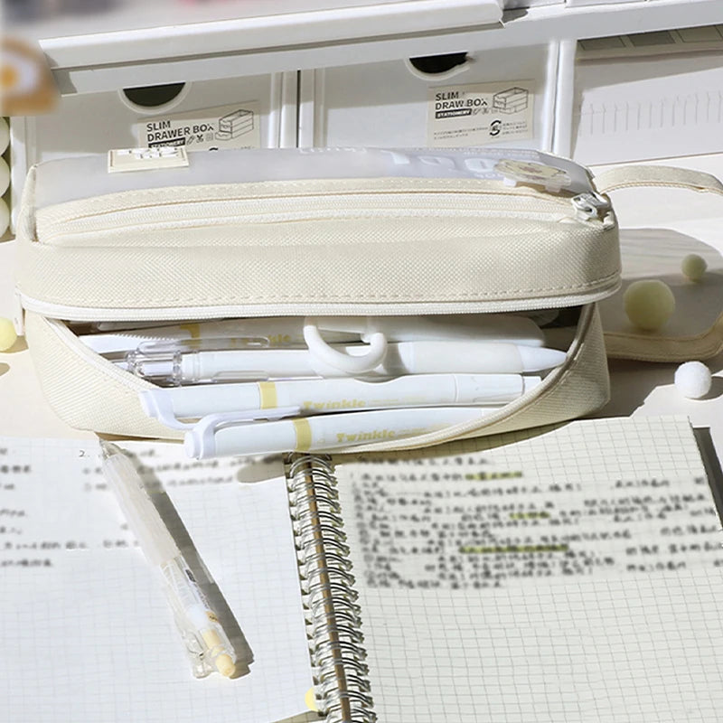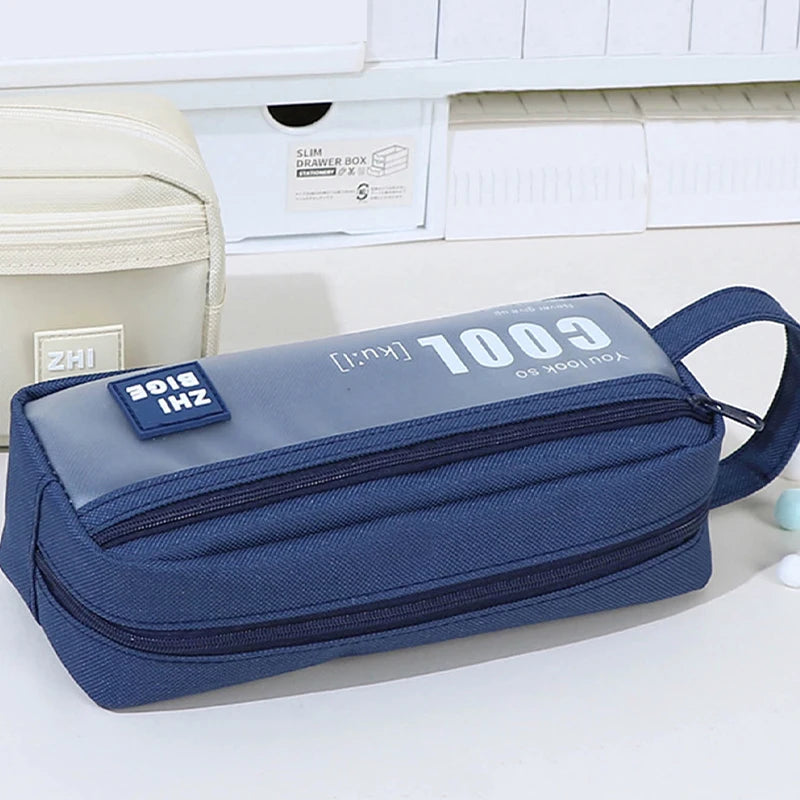 1Pc Large Capacity Pencil Case 2 Compartment Multifunctional Pen Bag for Girls Boy School Student Office Stationery Organizer