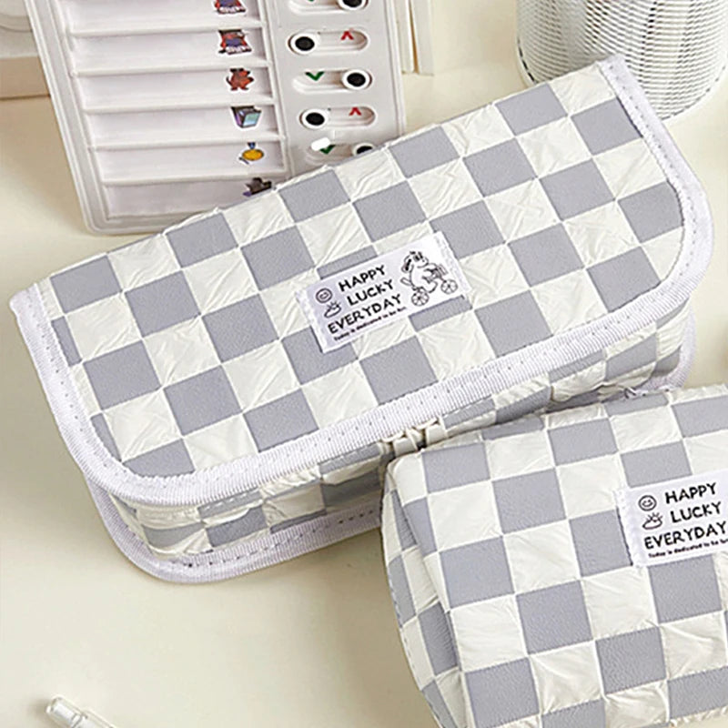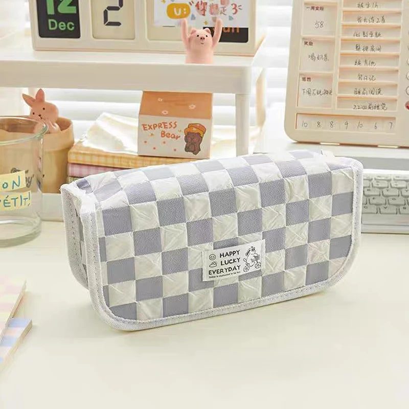 1Pc Large Capacity Small Dog Plaid Canvas Pencil Case School pencil case Kawaii Stationery Storage Bag aesthetic stationery