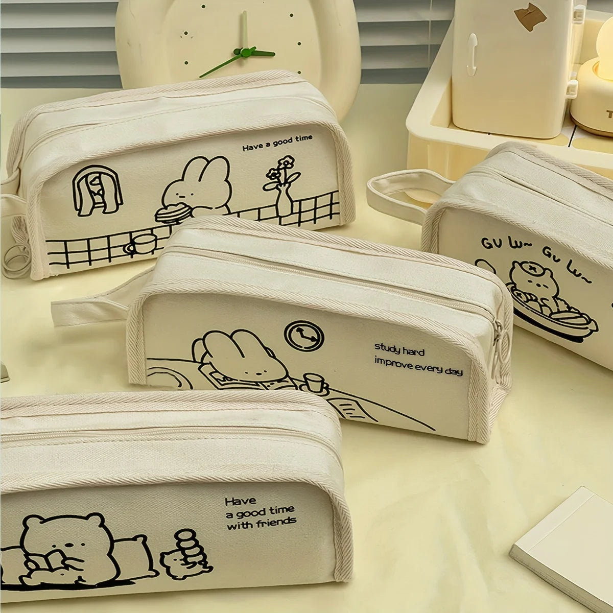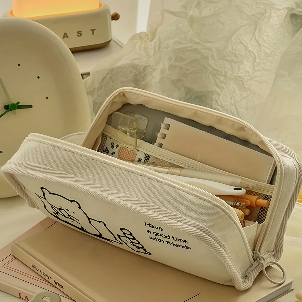 1pc Multi-layer pencil case with large capacity, multi-purpose student pencil case and makeup storage bag - cute reading bear