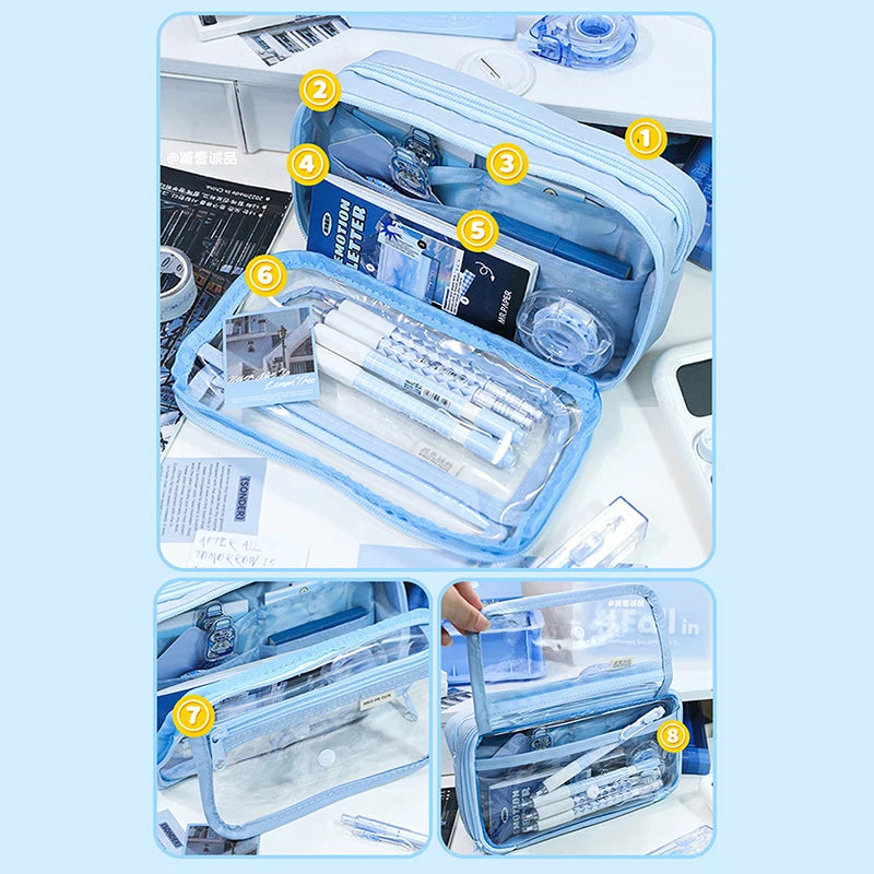 1PC Pencil Bag for School Students with Large Capacity Multi-functional Pen Case Macaron Color Matching Cute Pencil Case
