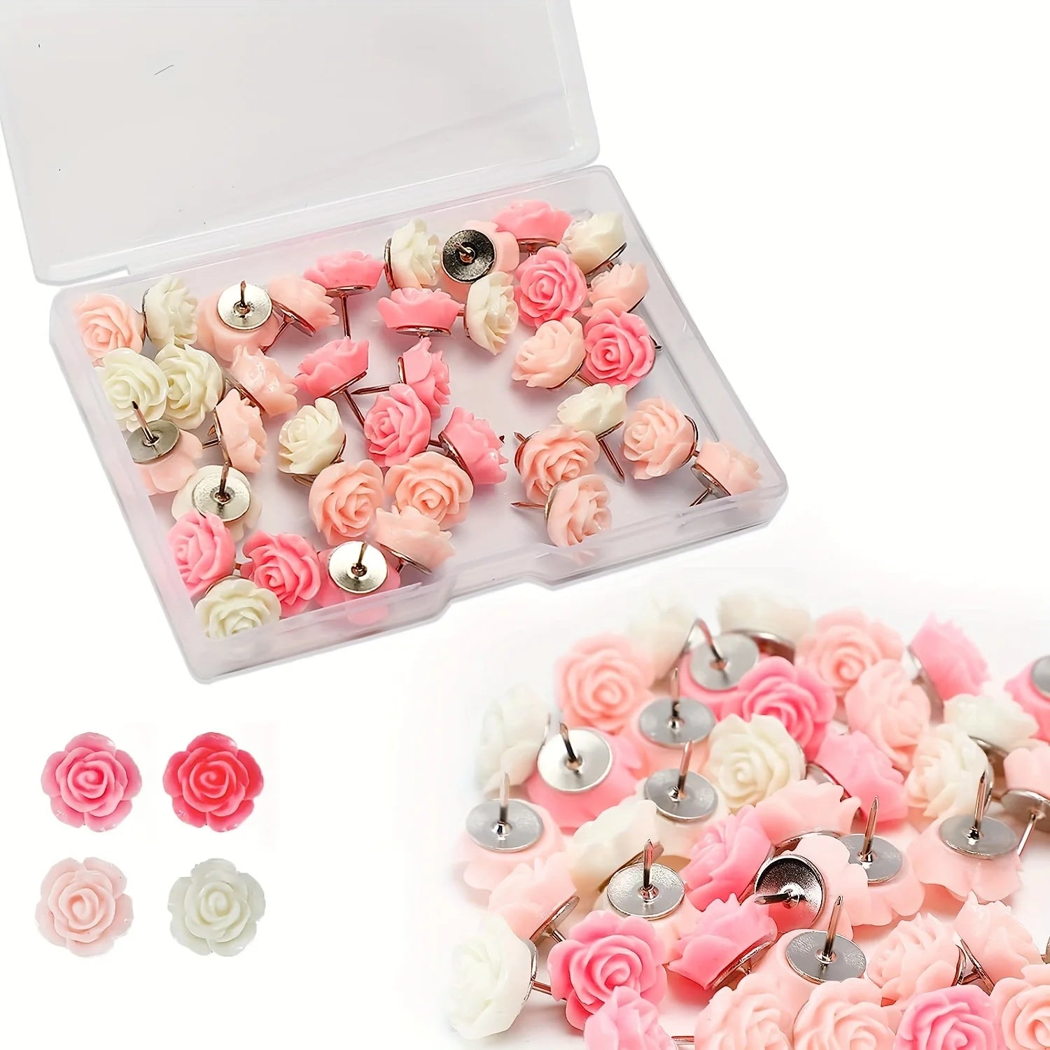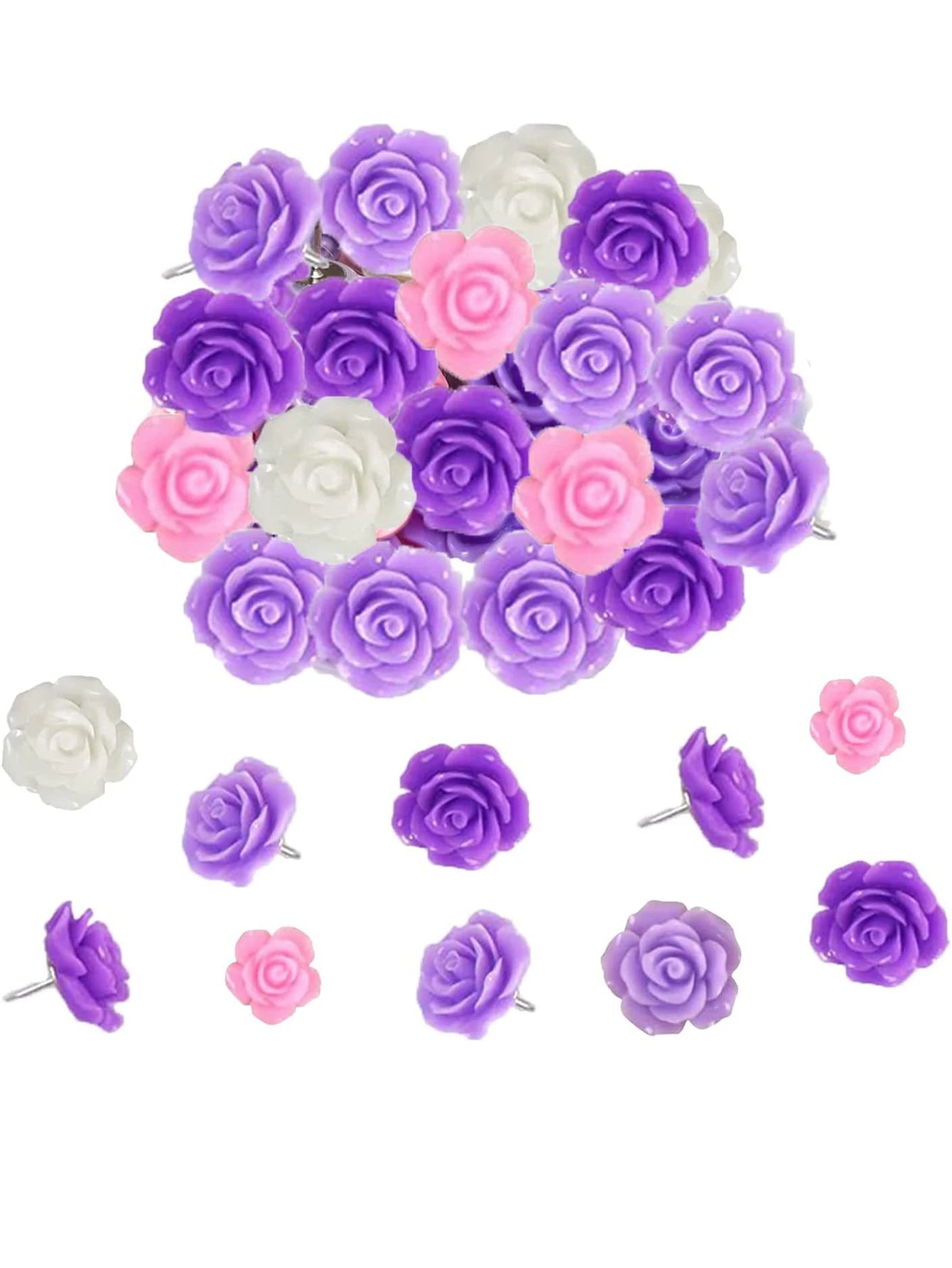 20pcs Resin Push Pins Cute Rose Flower Thumbtack New Board Drawing Photo Wall Studs Office Maps School Classroom Supplies