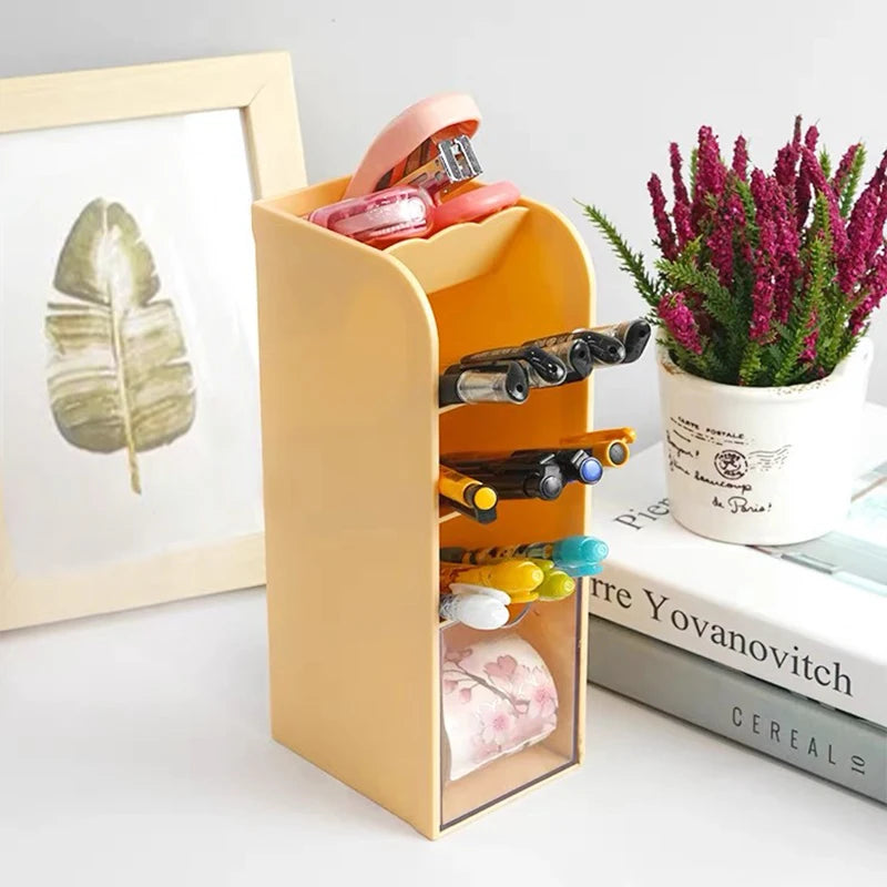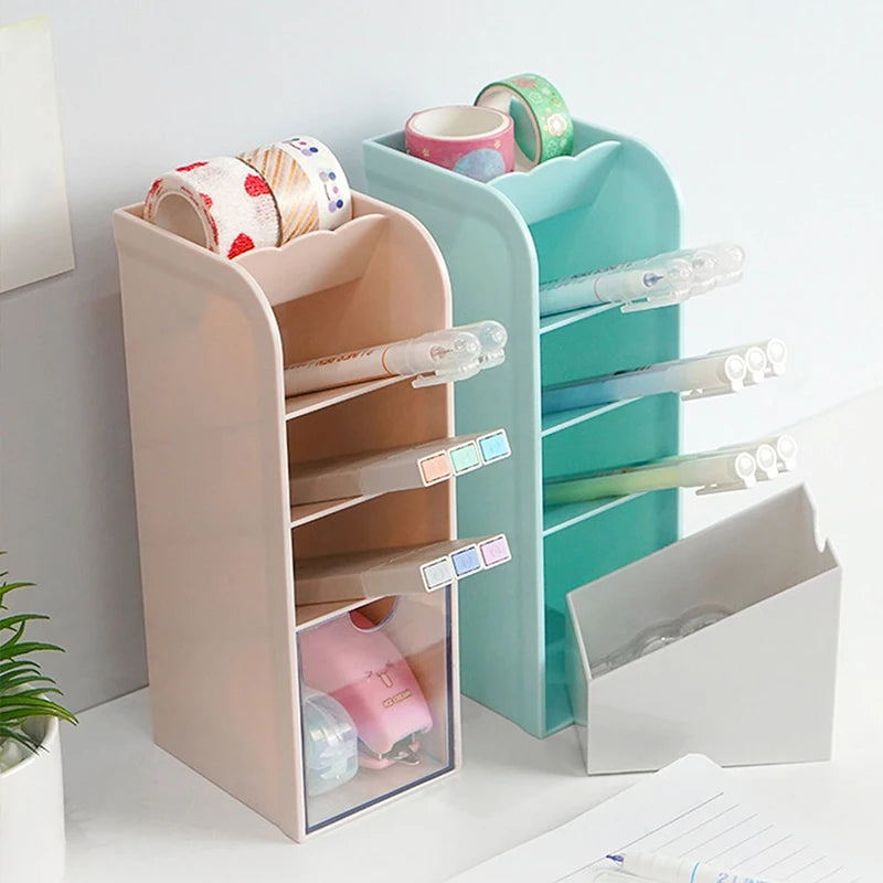 4 layer Macaron Color Oblique Insertion Desktop Organizer Pen Holder Pencil Makeup Brush Storage Box School Stationery