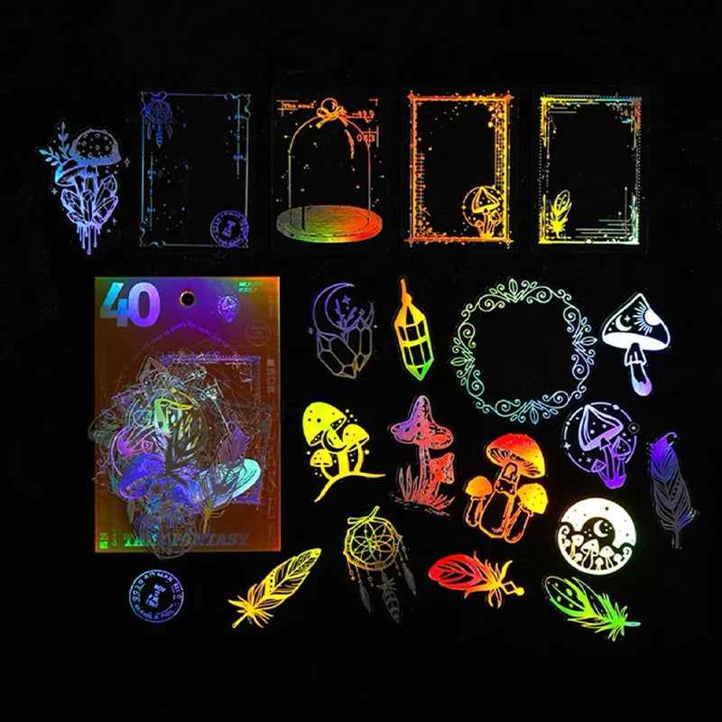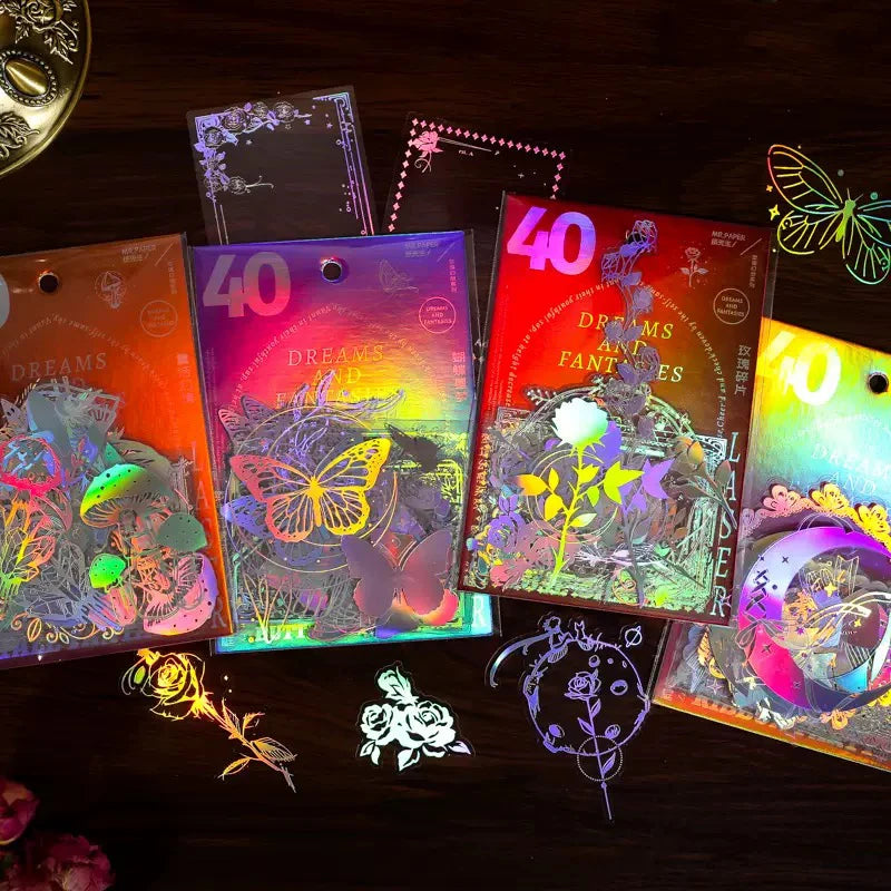 40pcs/pack PET Laser Craft Stickers Collage Junk Journal DIY Scrapbooking Adhesive Decor Waterproof Sticker Stationery