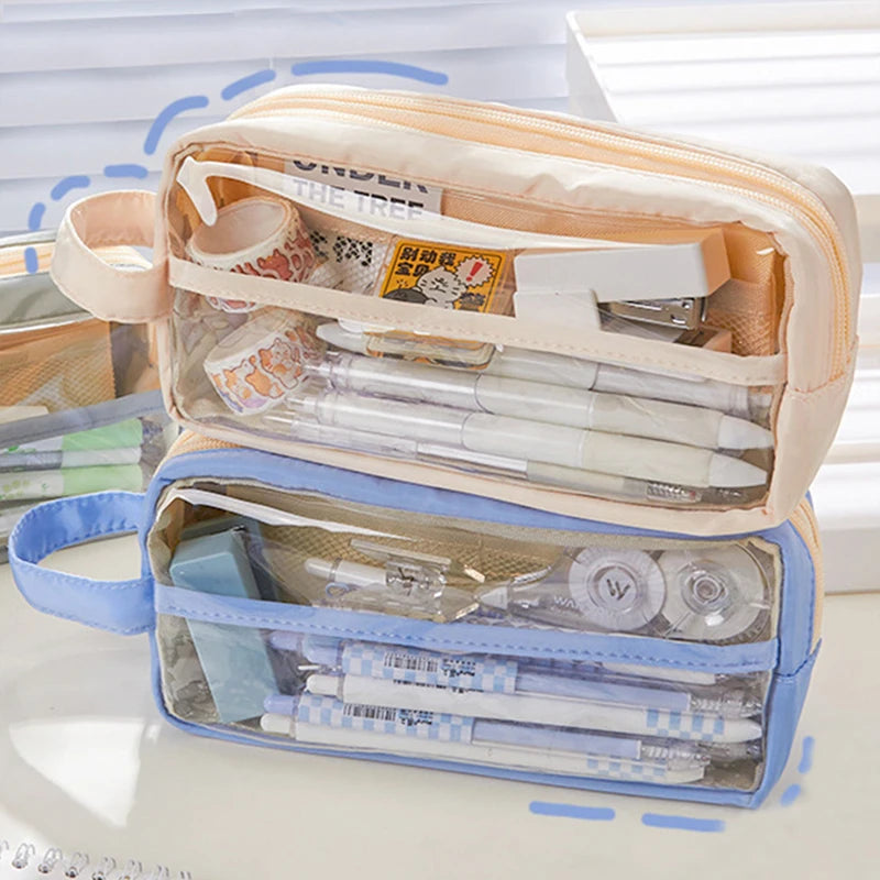 Large-capacity transparent pencil case, stationery storage, back-to-school supplies, toiletry bag, office and school supplies