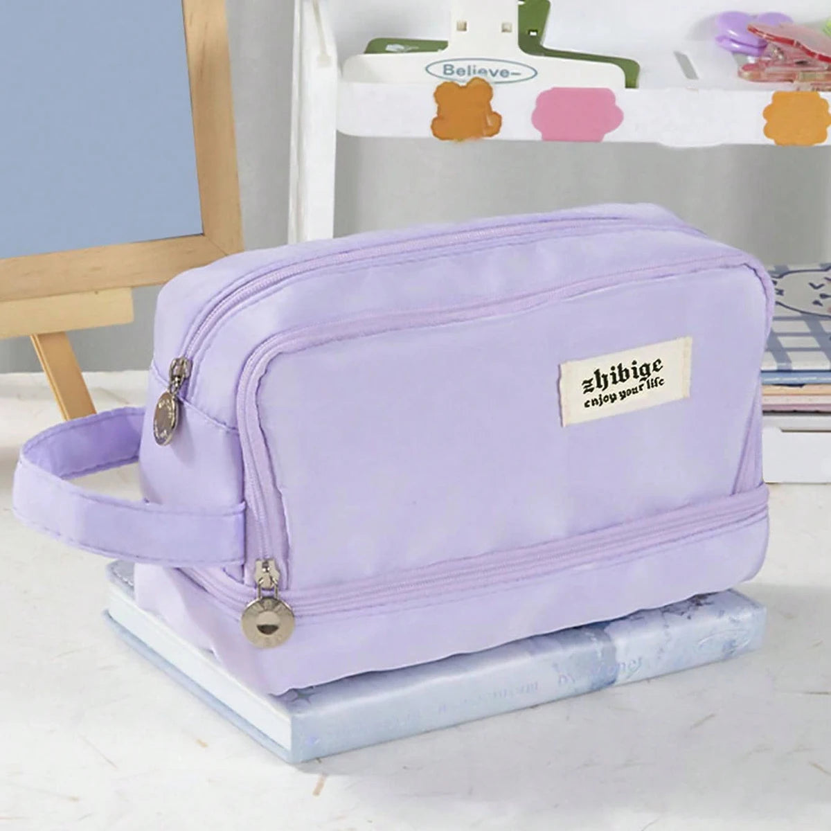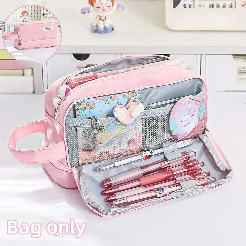 Macaron Pencil Case Double layer Large Capacity pencil bag Cute Back to School Stationery Supplies Schools
