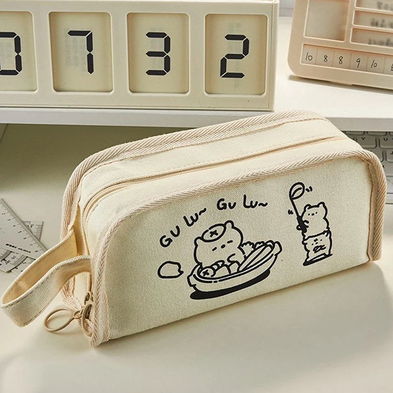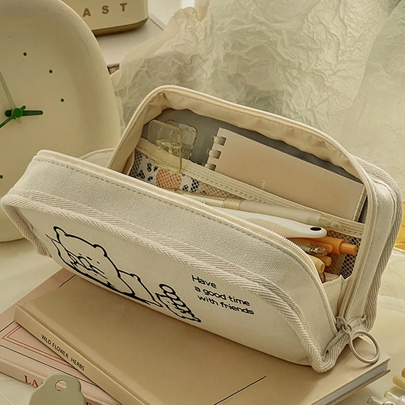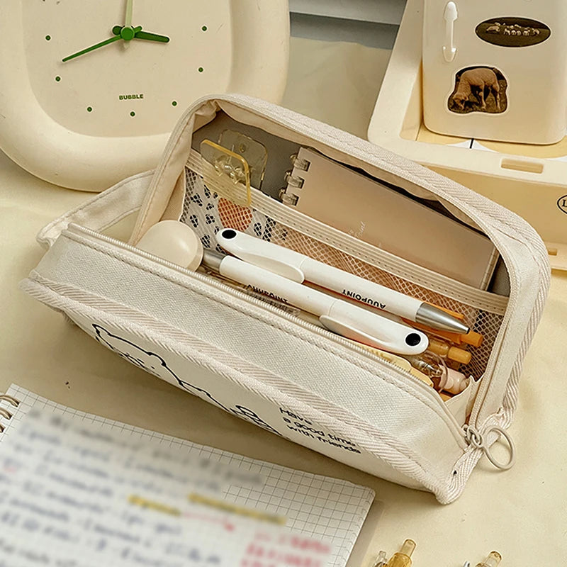Pencil Cases Bags Cartoon Large Capacity Storage Pouch Holder Box for Girls Office Student Stationery Organizer School Supplies